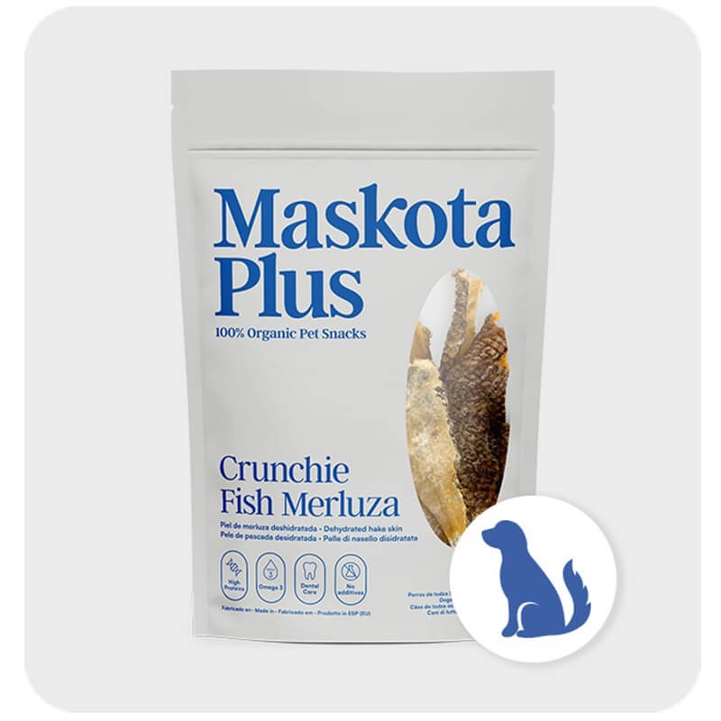 Este snack proporciona una extraordinaria cantidad de ácidos omega-3: con 6,2 g de omega-3 por cada 100 g, que ayudarán a mejorar la salud cardiovascular, la piel y un pelaje lustroso en perros y gatos. Además, con 38,4 g/100g de proteína de pescado blanco, es una excelente fuente de proteínas para el desarrollo y mantenimiento del sistema musculoesquelético.